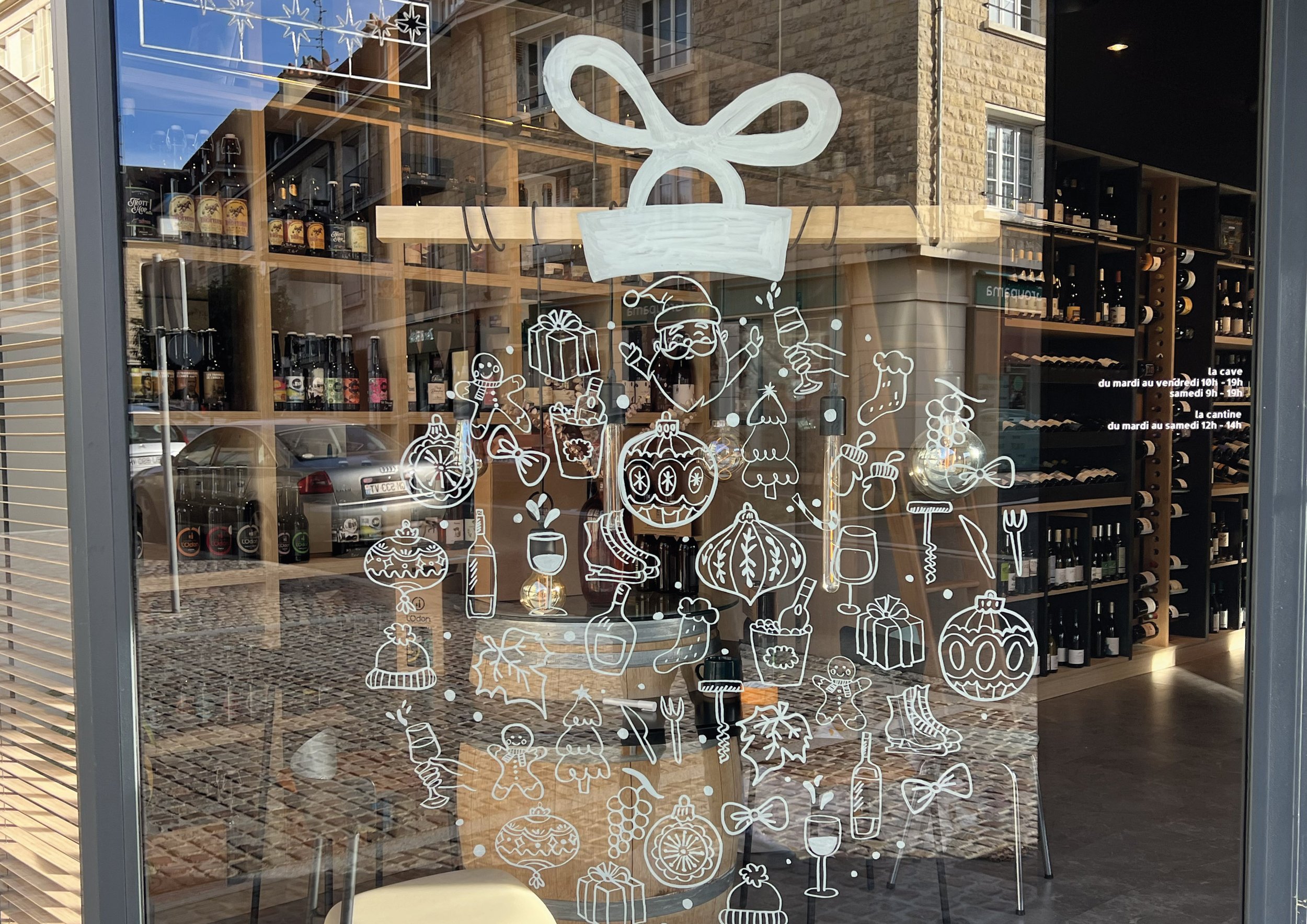 Chaque saison apporte son ambiance, ses couleurs et son énergie. J’aime particulièrement la peinture sur vitrine car elle reste un travail entièrement manuel. Travailler sur de grandes surfaces permet de créer un véritable impact visuel et d’attirer le regard des passants.
